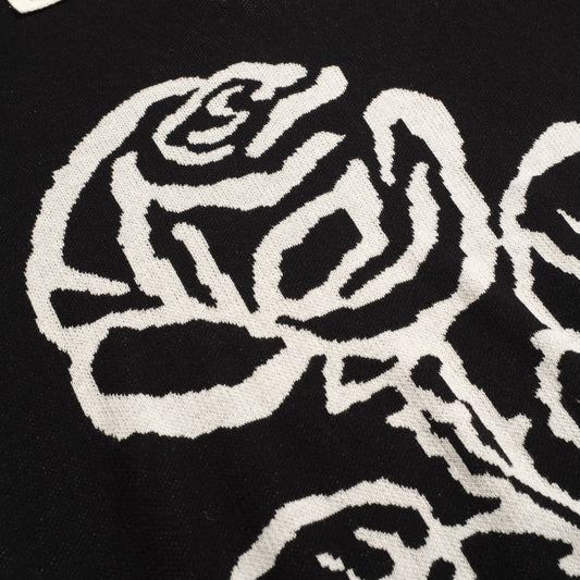 • Polo en tricot vintage noir pour hommes à col en V floral