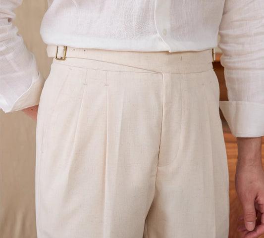 • Pantalons Plissés Doubles Aérés en Seersucker Positano