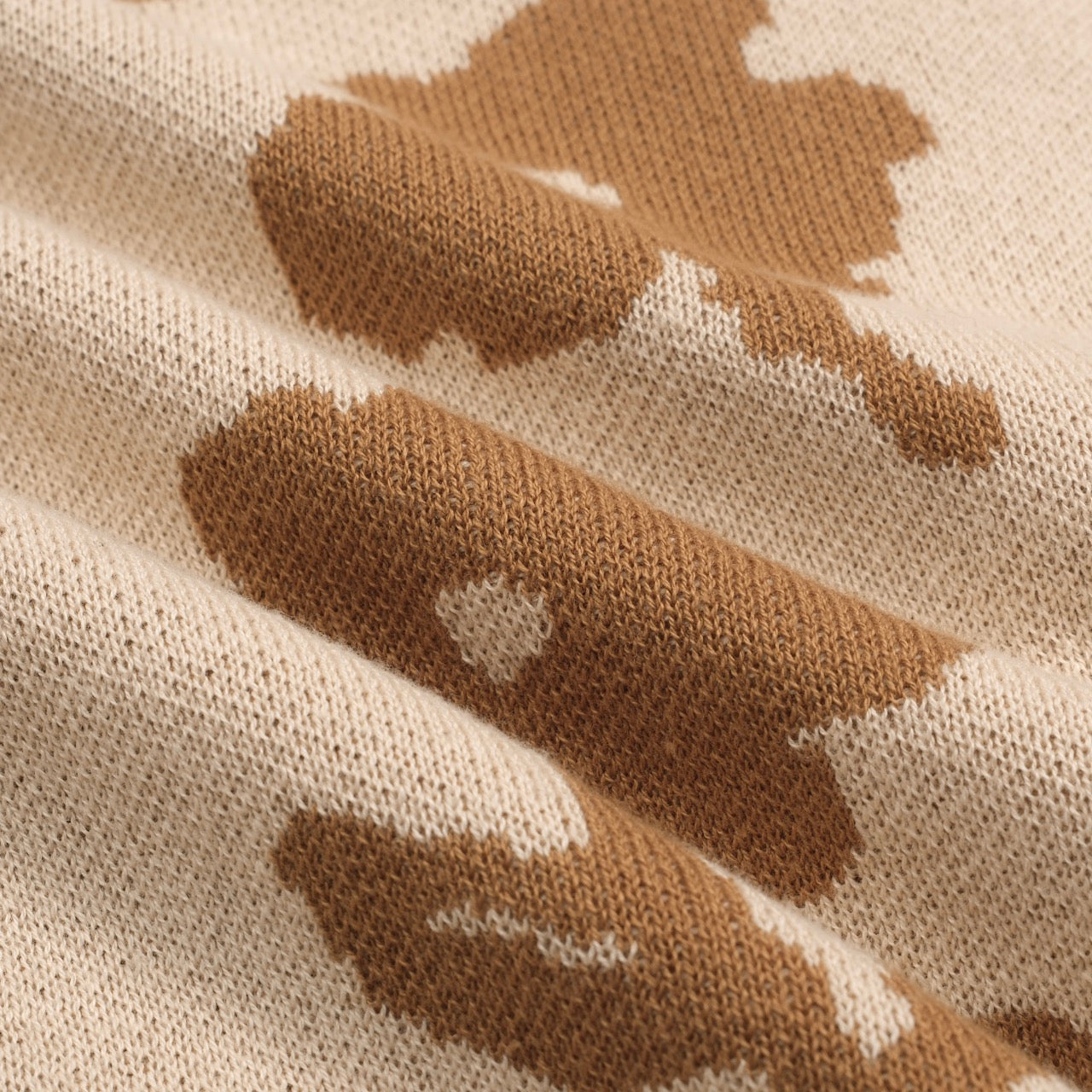 Cardigan décontracté en jacquard floral vintage kaki pour hommes