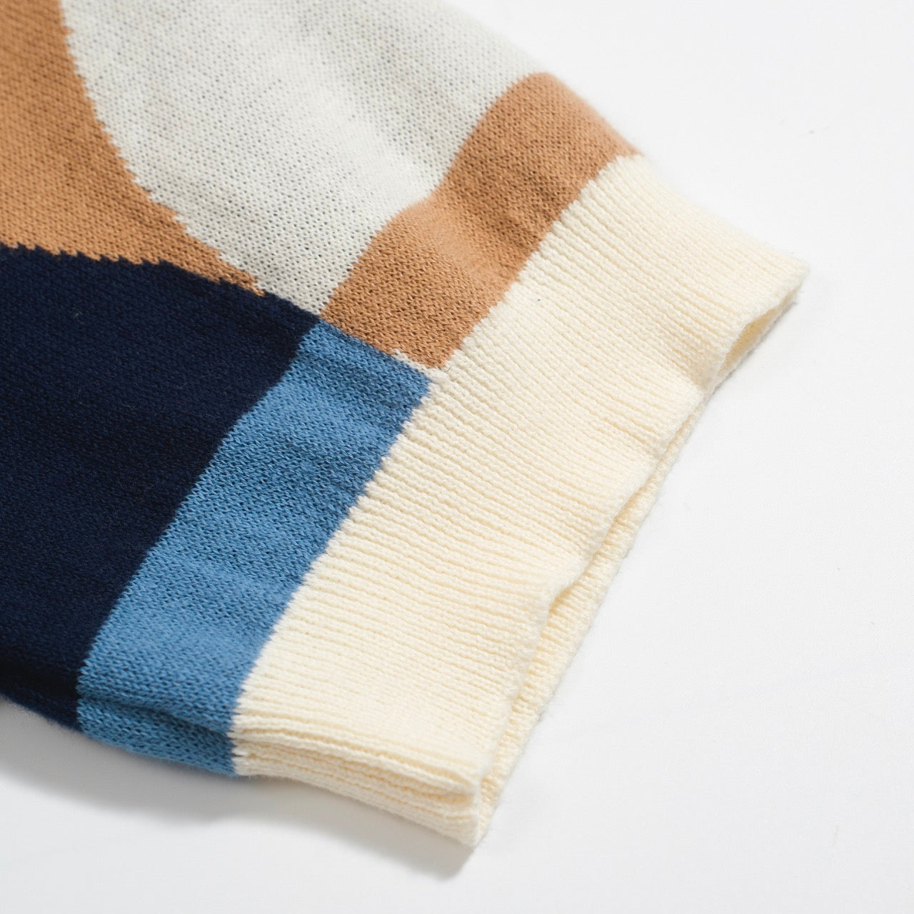 Capturez le style vintage iconique avec cette chemise polo tricotée rétro pour hommes. Arborant un motif géométrique frappant dans des nuances de bleu, crème et beige, ce design boutonné évoque l'élégance et la créativité de la mode classique des années 1960 et 1970. Fabriqué en tissu tricoté doux et mis en valeur par des finitions couleur crème, il offre à la fois un attrait visuel audacieux et un confort pour un usage quotidien.