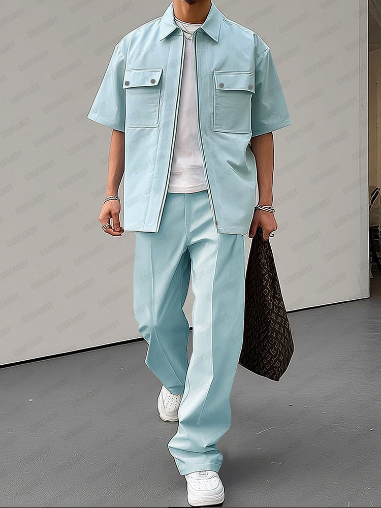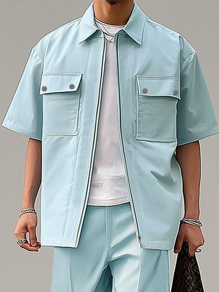 - Haut : Manches courtes, fermeture éclair, 2 poches poitrine