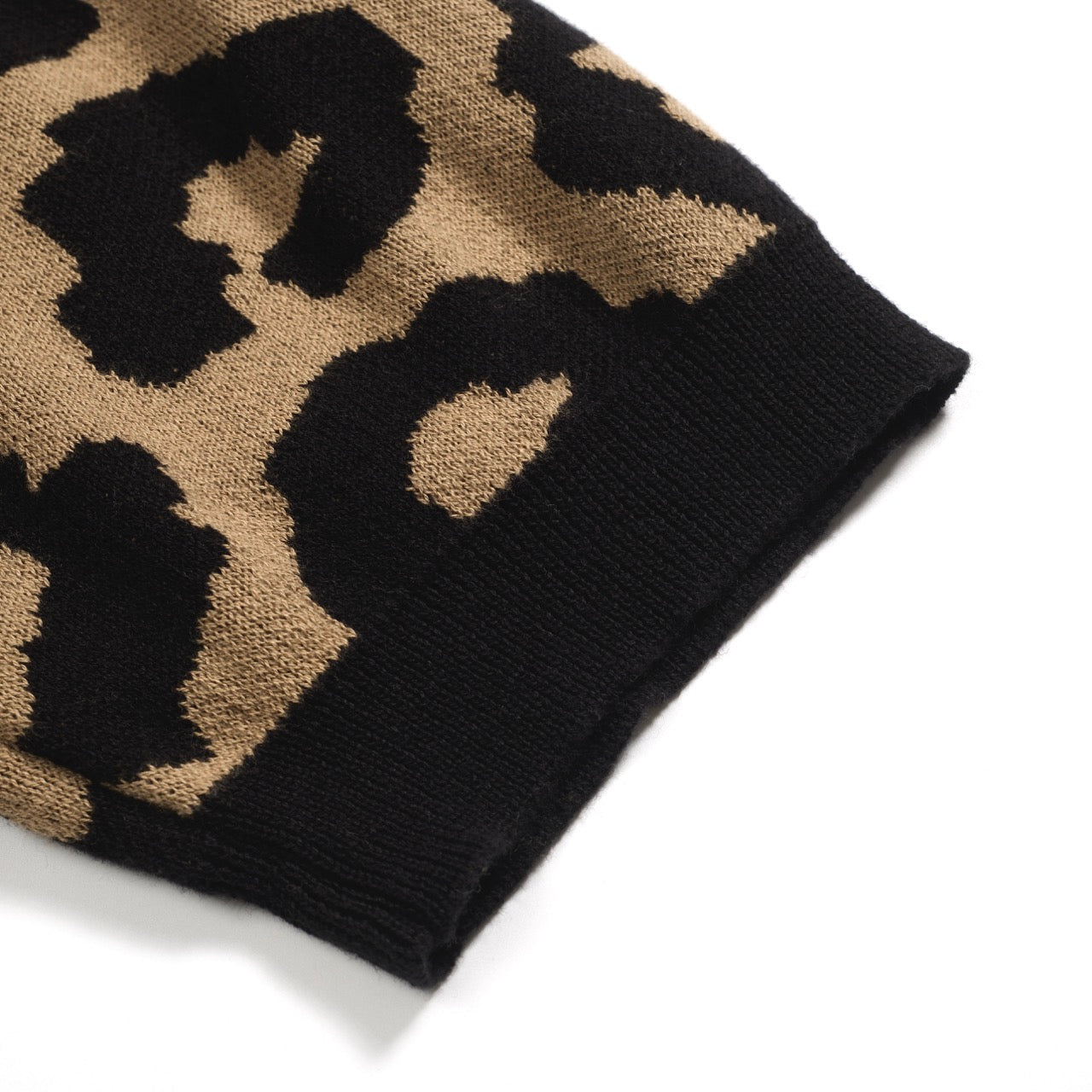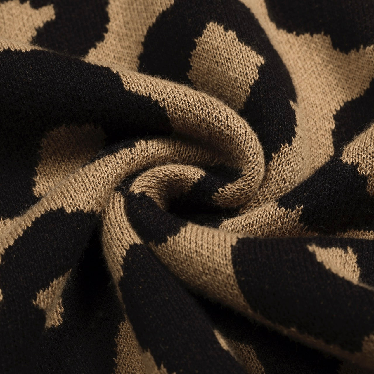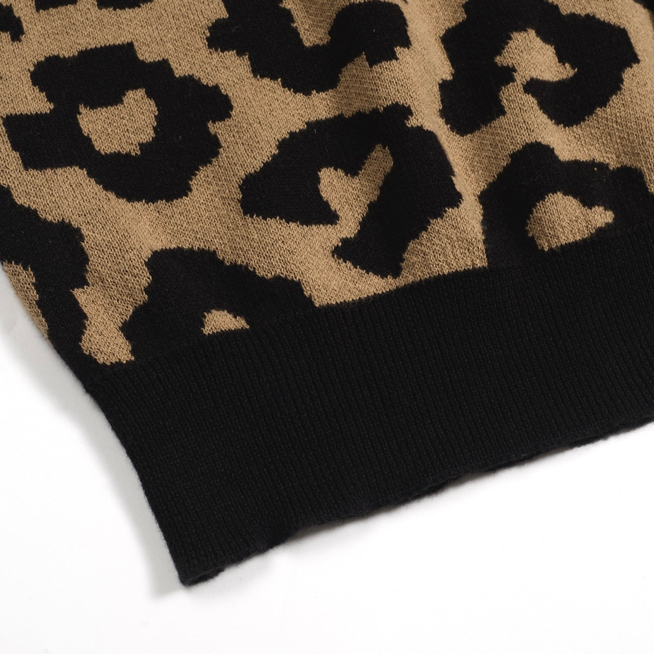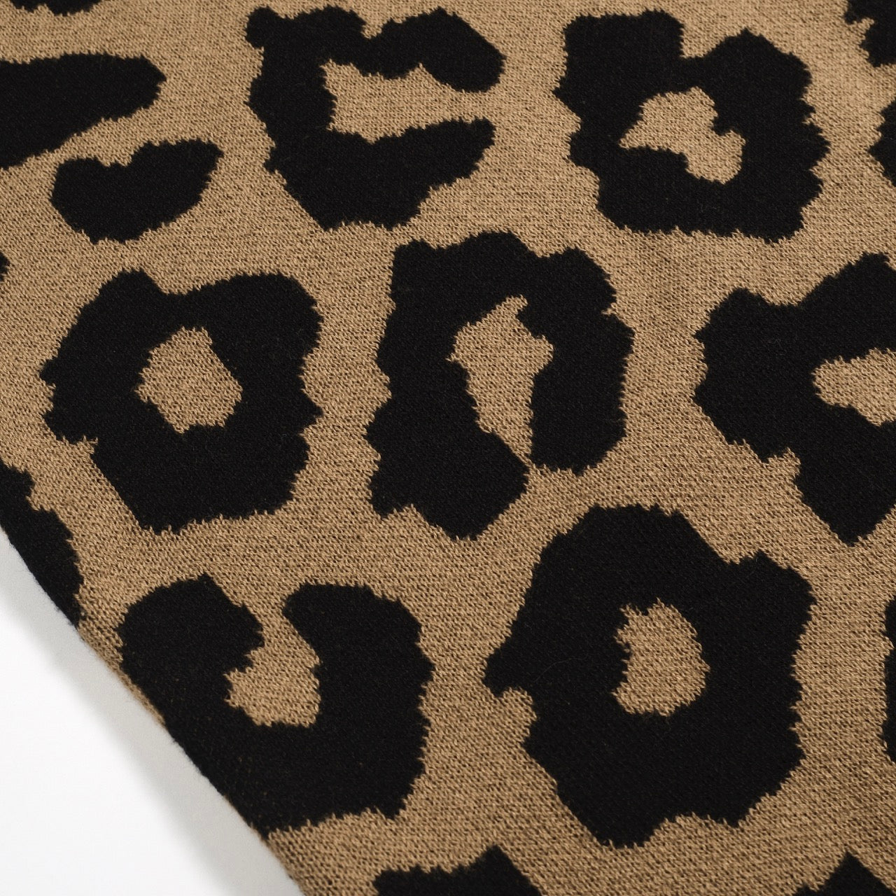 Gilet en jacquard tricoté vintage à imprimé léopard marron pour hommes
