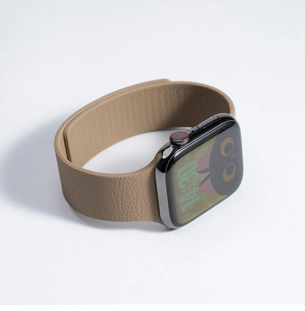 Votre montre intelligente vient de trouver sa tenue préférée. Cette bande se glisse comme une seconde peau — sans boucle, sans encombrement, juste du silicone premium lisse avec un grain subtil que vous voudrez caresser du doigt. Son look épuré et ses tons neutres et apaisants s'accordent avec tout, des joggeurs aux chemises à boutons. Pensez-y comme à la mise à niveau discrète que votre poignet attendait.