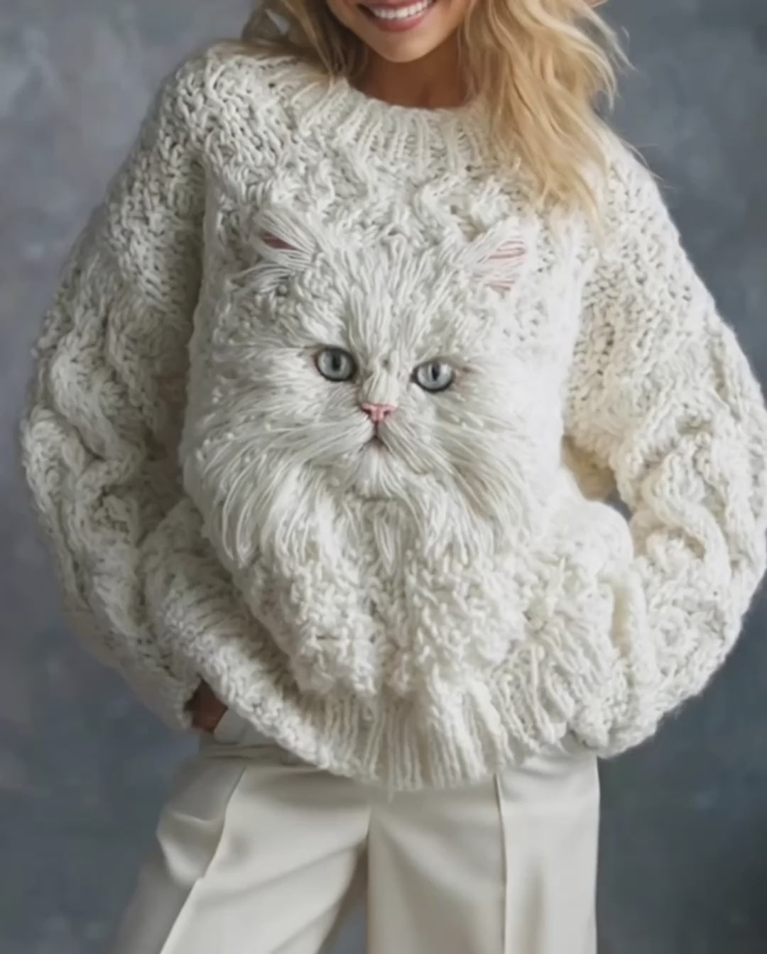 Que vous soyez une véritable amoureuse des chats ou simplement adepte d’une mode originale et confortable, ce pull apportera un sourire à votre visage et de la chaleur à votre garde-robe.