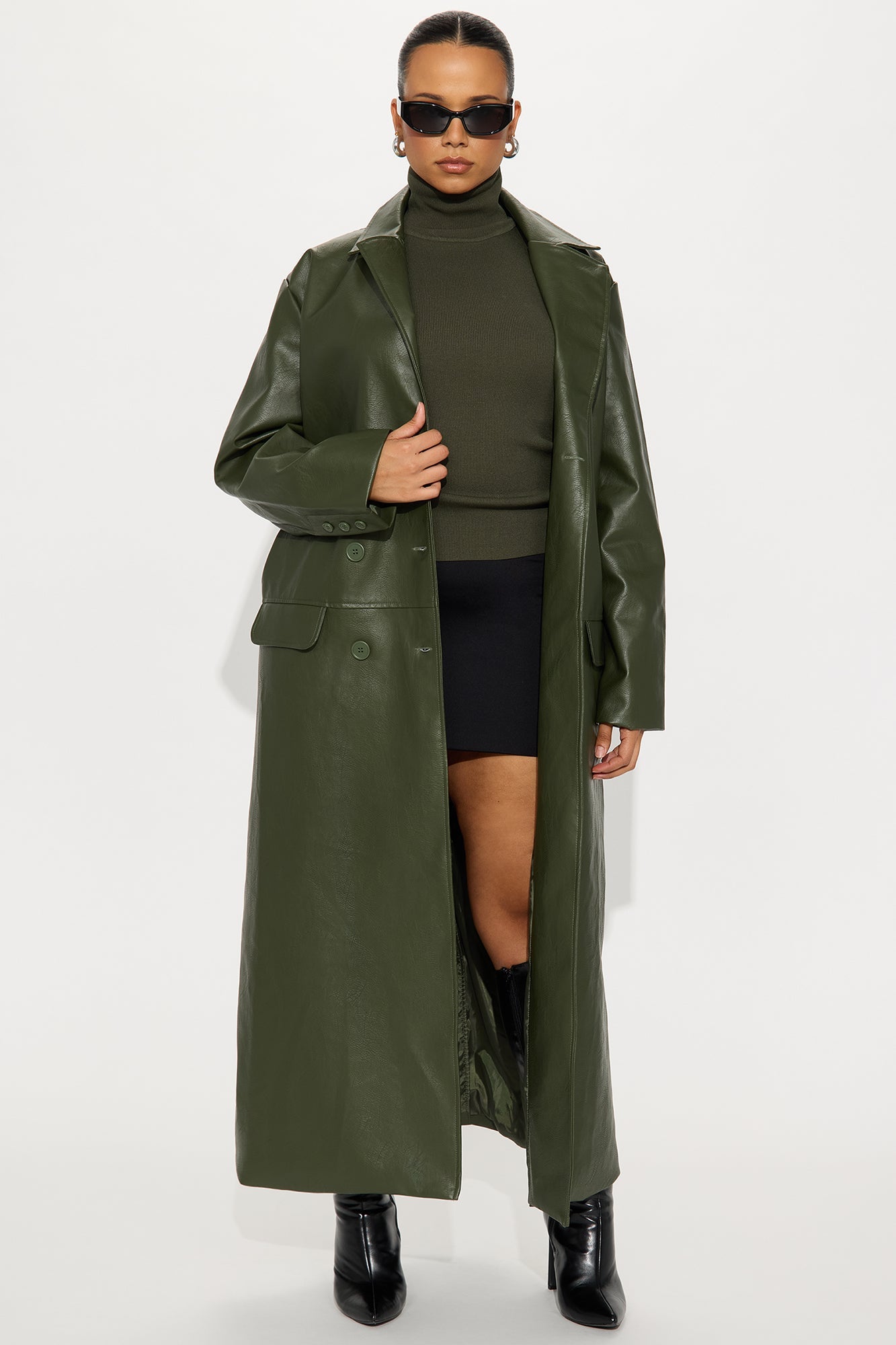 Manteau Double Boutonné en Simili Cuir Drew - Vert Militaire