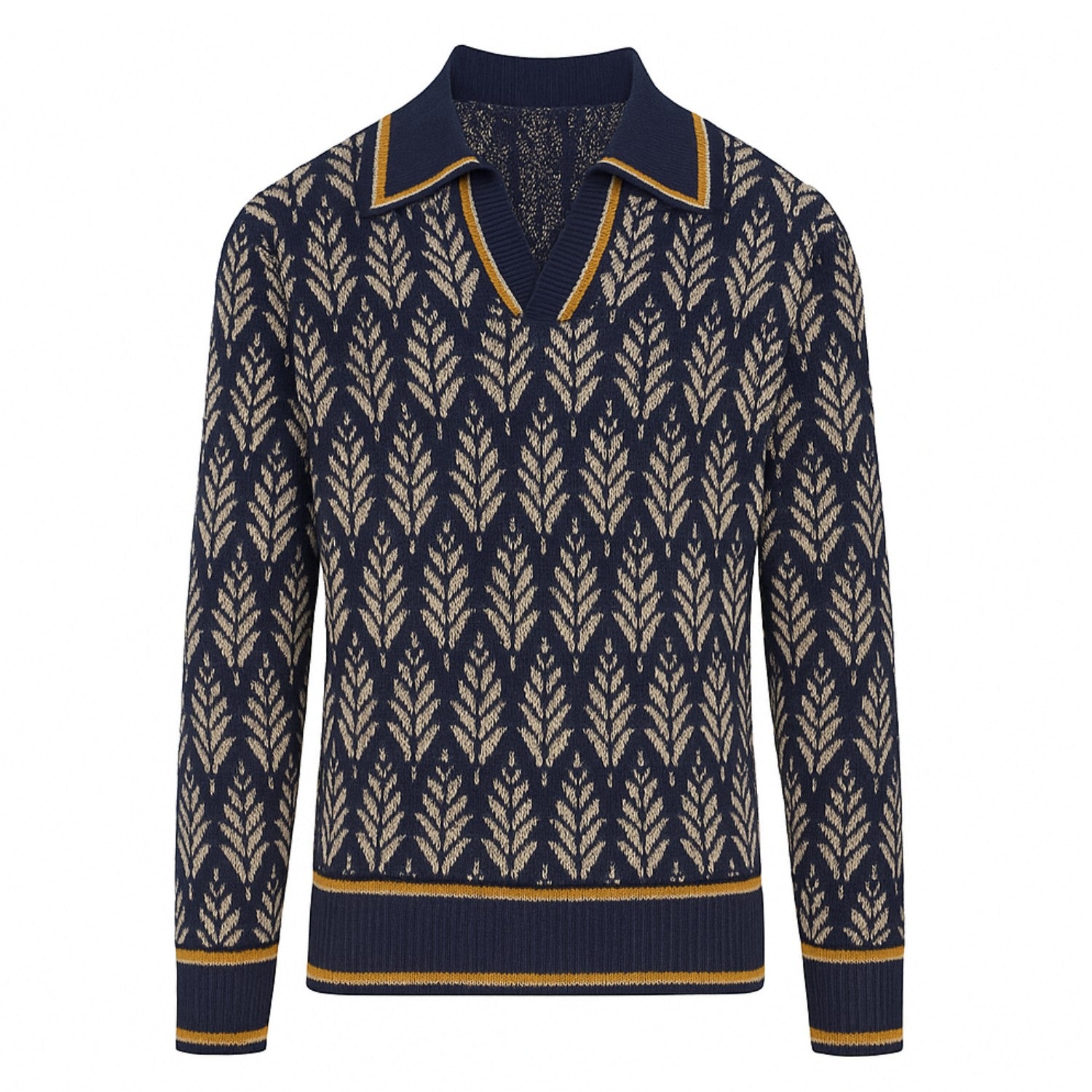 Polo en jacquard à col en V marine pour homme des années 70