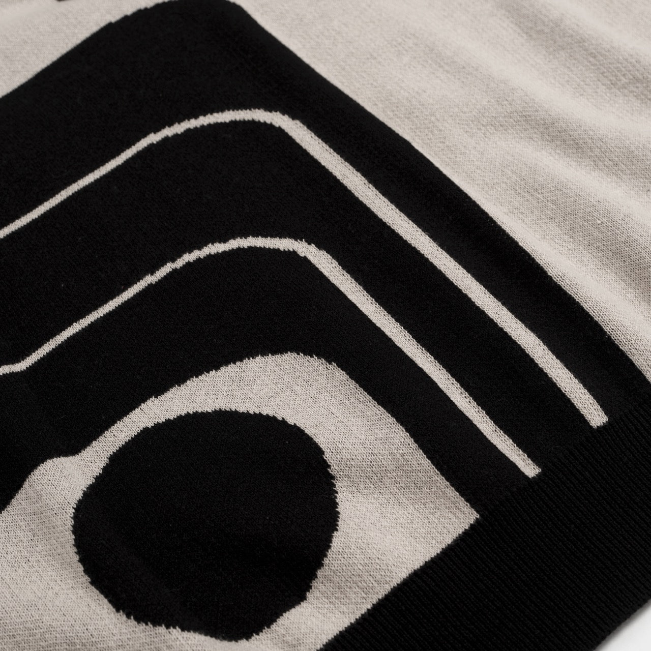 Une géométrie audacieuse rencontre le style MOD des années 60 dans ce polo rétro frappant.