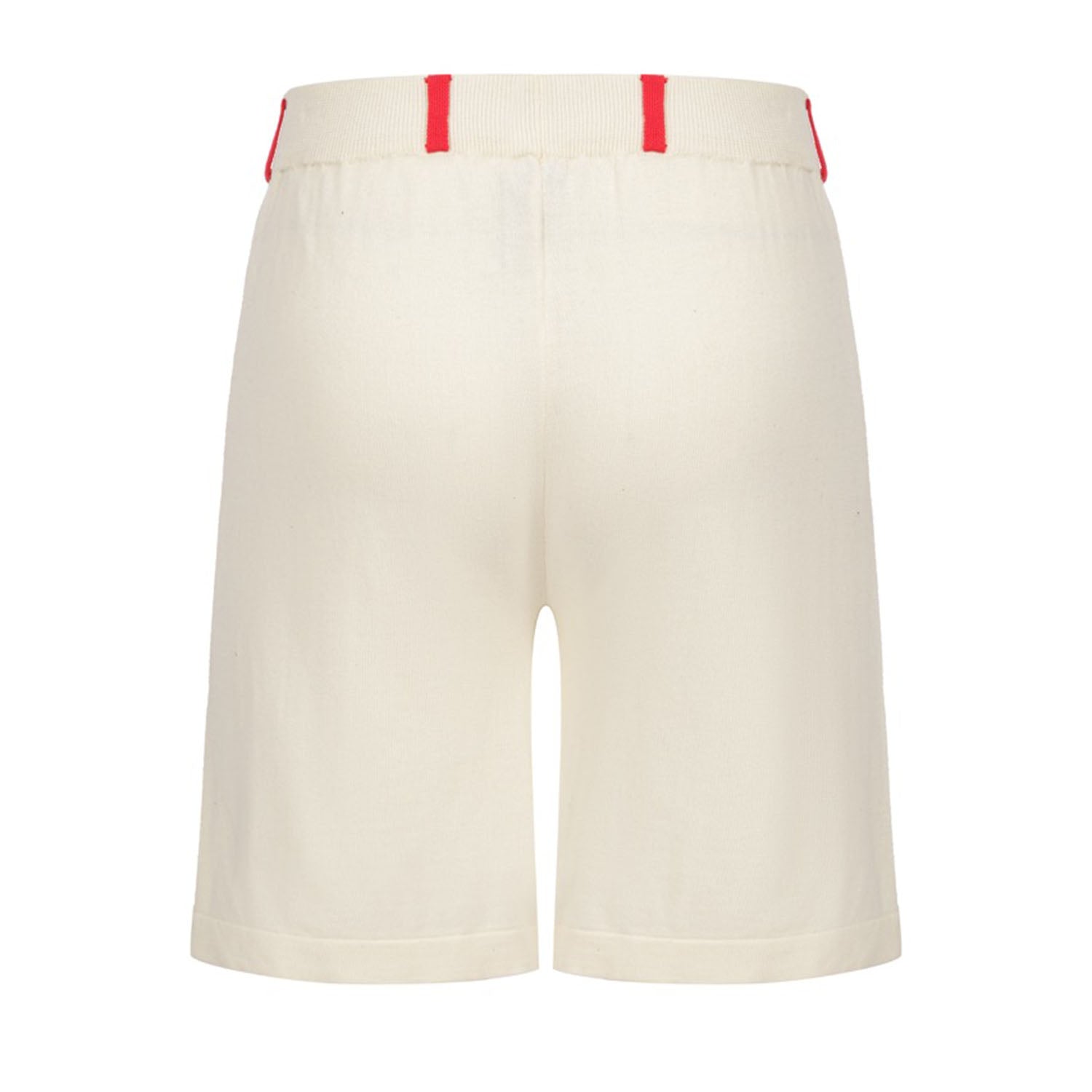 Ajoutez une touche de romance vintage à votre garde-robe estivale avec ces shorts en tricot inspirés des hommes rétro. Conçus dans une teinte crème ivoire, ils présentent une rose rouge délicatement brodée sur la jambe et de grandes passants de ceinture rouges pour le contraste. Le tissu en tricot doux offre confort et élasticité, tandis que la silhouette minimaliste leur donne une allure propre et polyvalente.