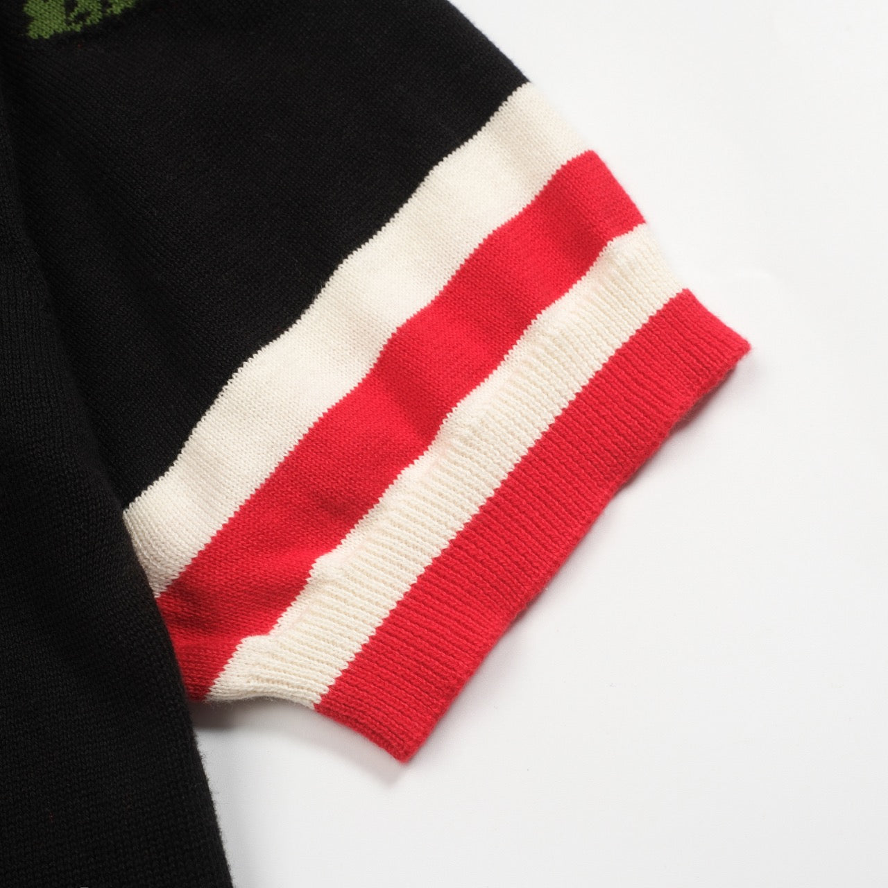 T-shirt en tricot jacquard Flamme de chat pour hommes, brodé en rose