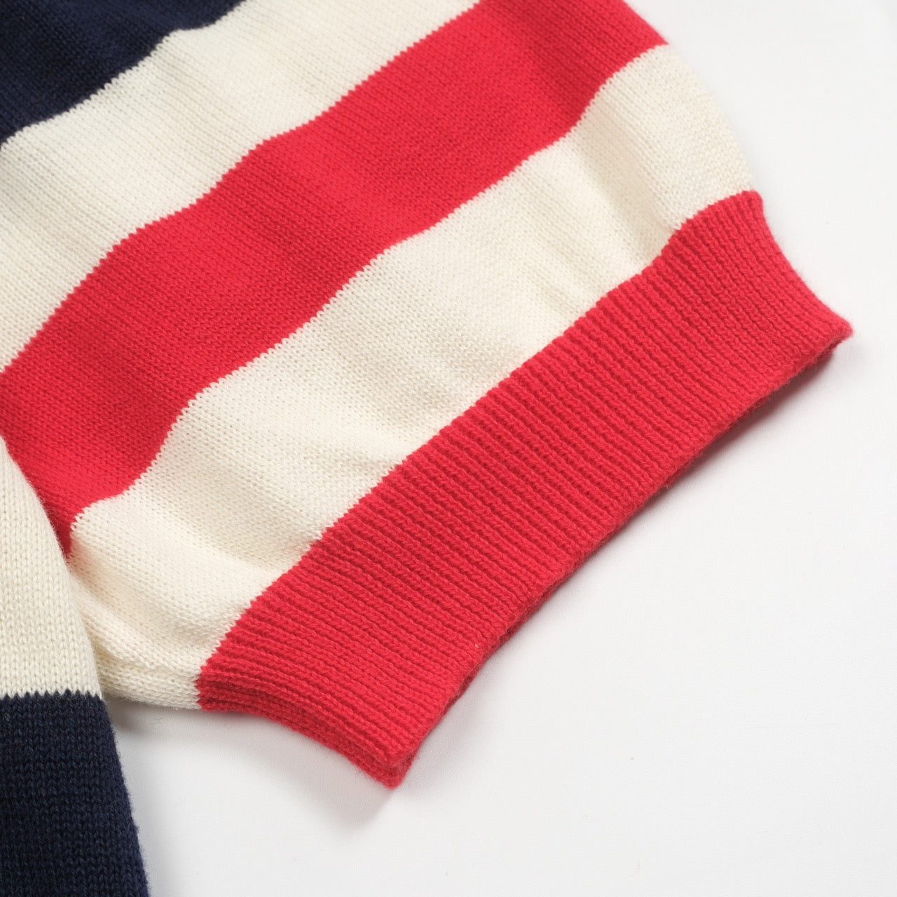 T-shirt tricoté à broderie animale rayé bleu marine pour hommes