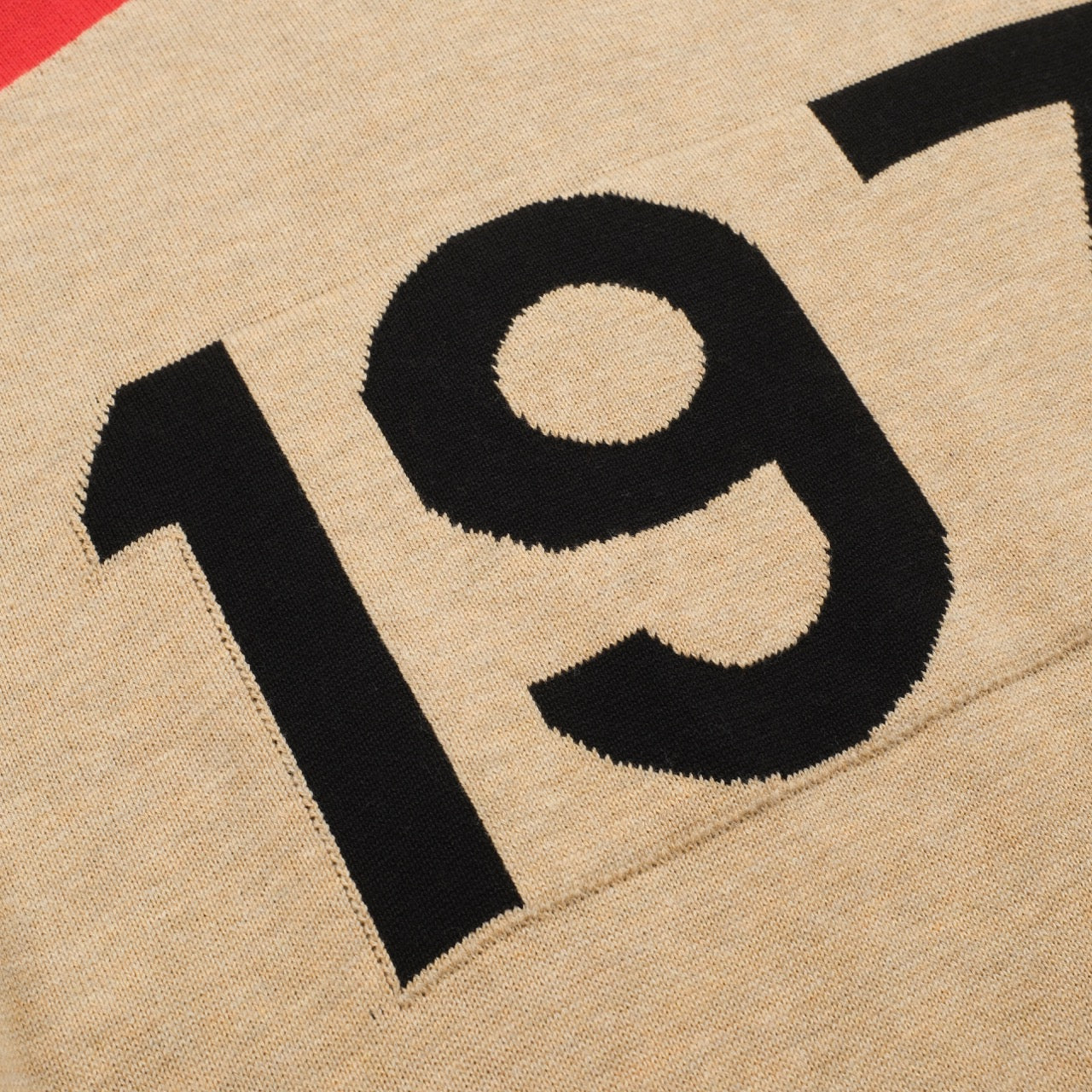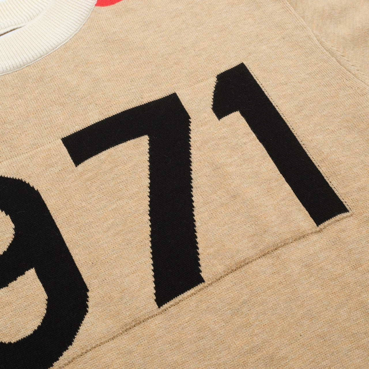 T-shirt vintage en jacquard tricoté kaki pour homme avec fil doré 1971