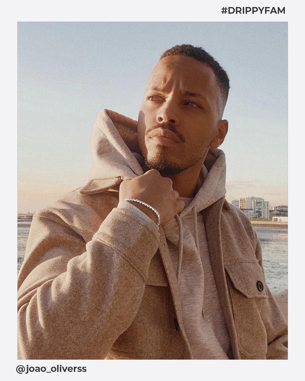 Gemaakt met onze premium witgoud rhodium afwerking voor een heldere, ijzige look die lang meegaat. Afgewerkt met 5x PVD-bescherming om die glans te behouden en voorzien van de Drippy Easy Clip-sluiting voor een stevige, klikvaste pasvorm.