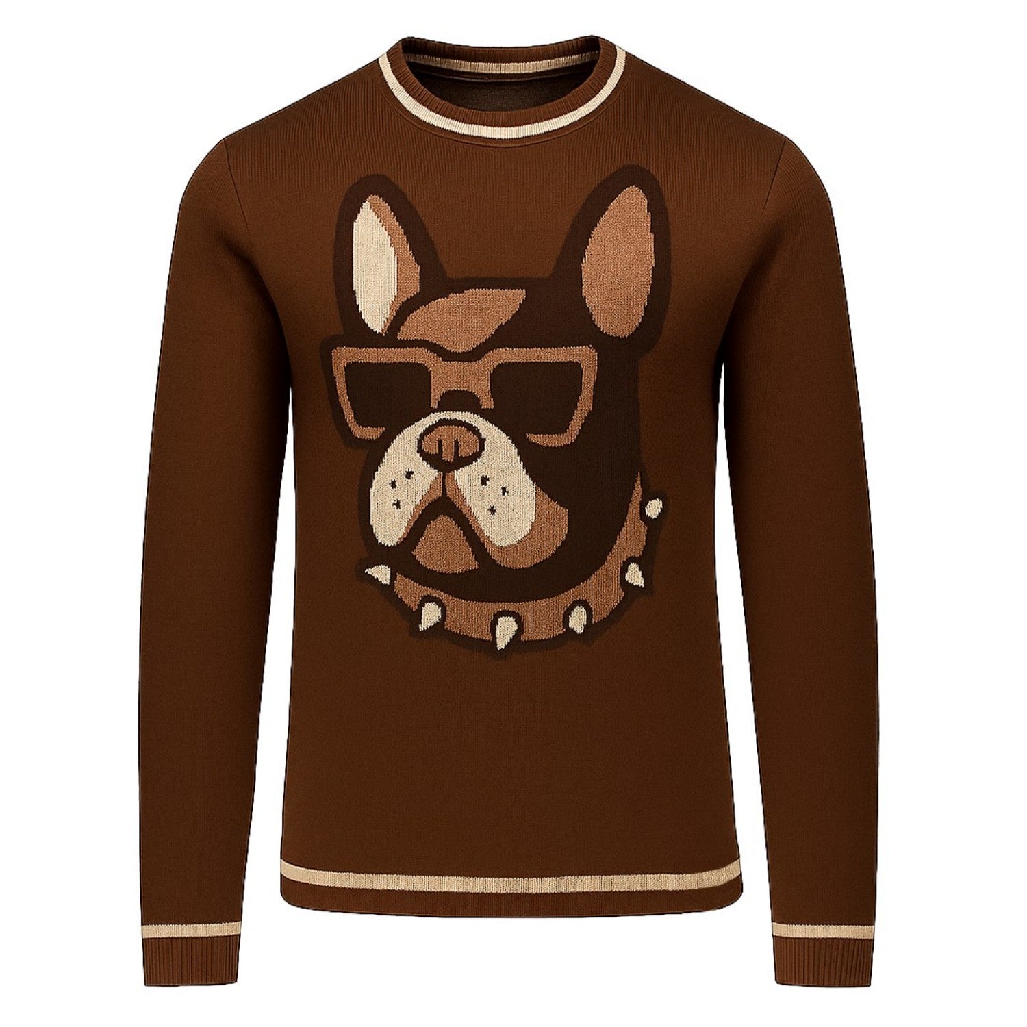Tricot vintage en jacquard pour hommes, bulldog français marron